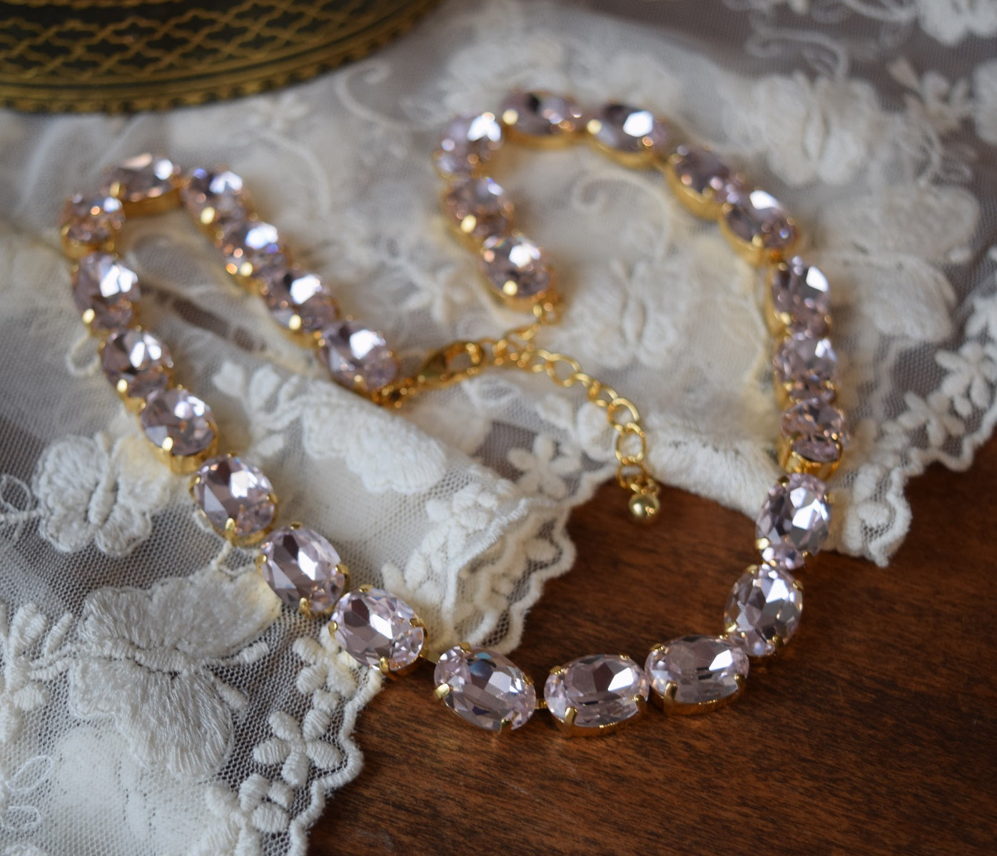 Light Pink Aurora Crystal Necklace - Medium Oval