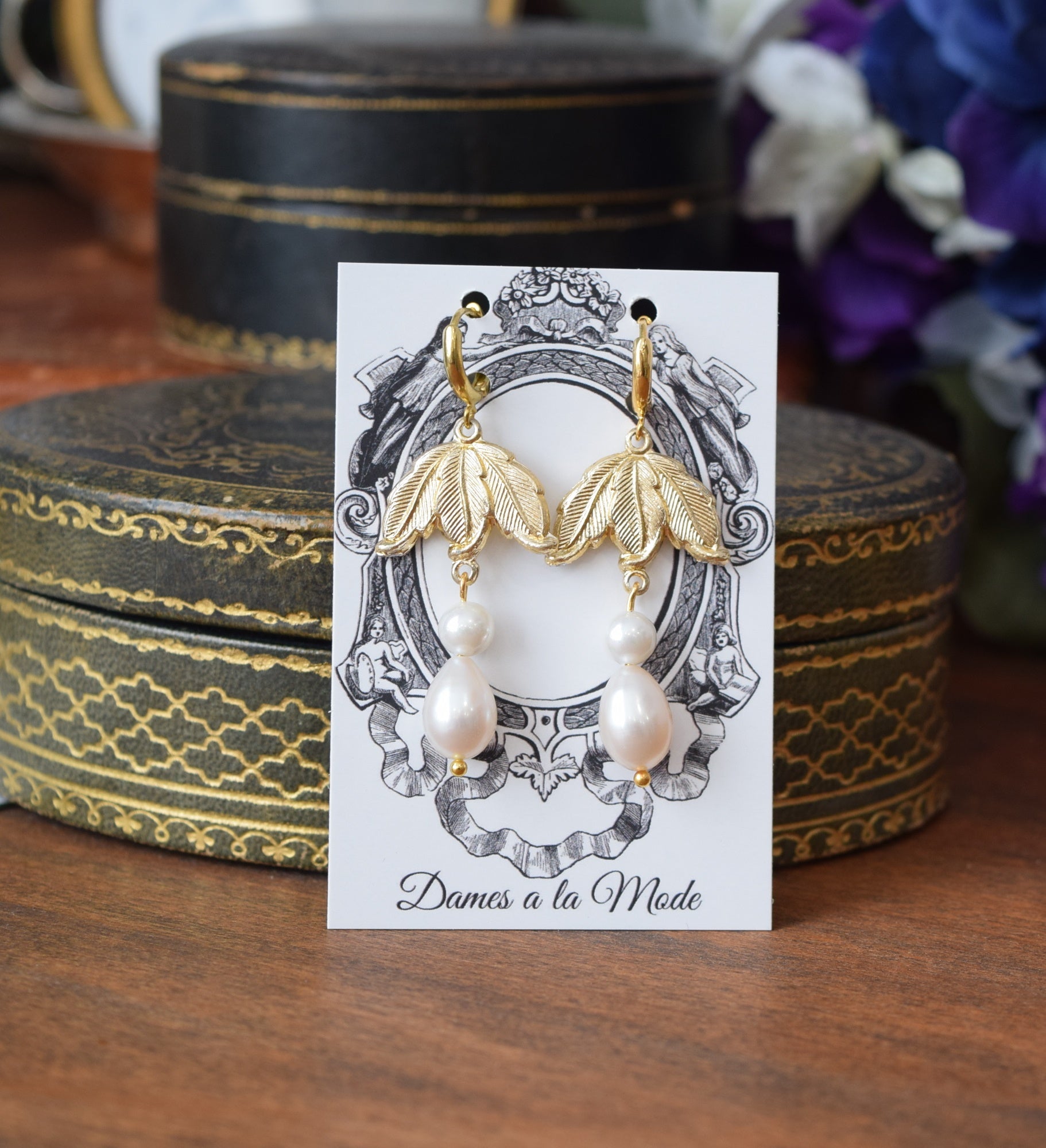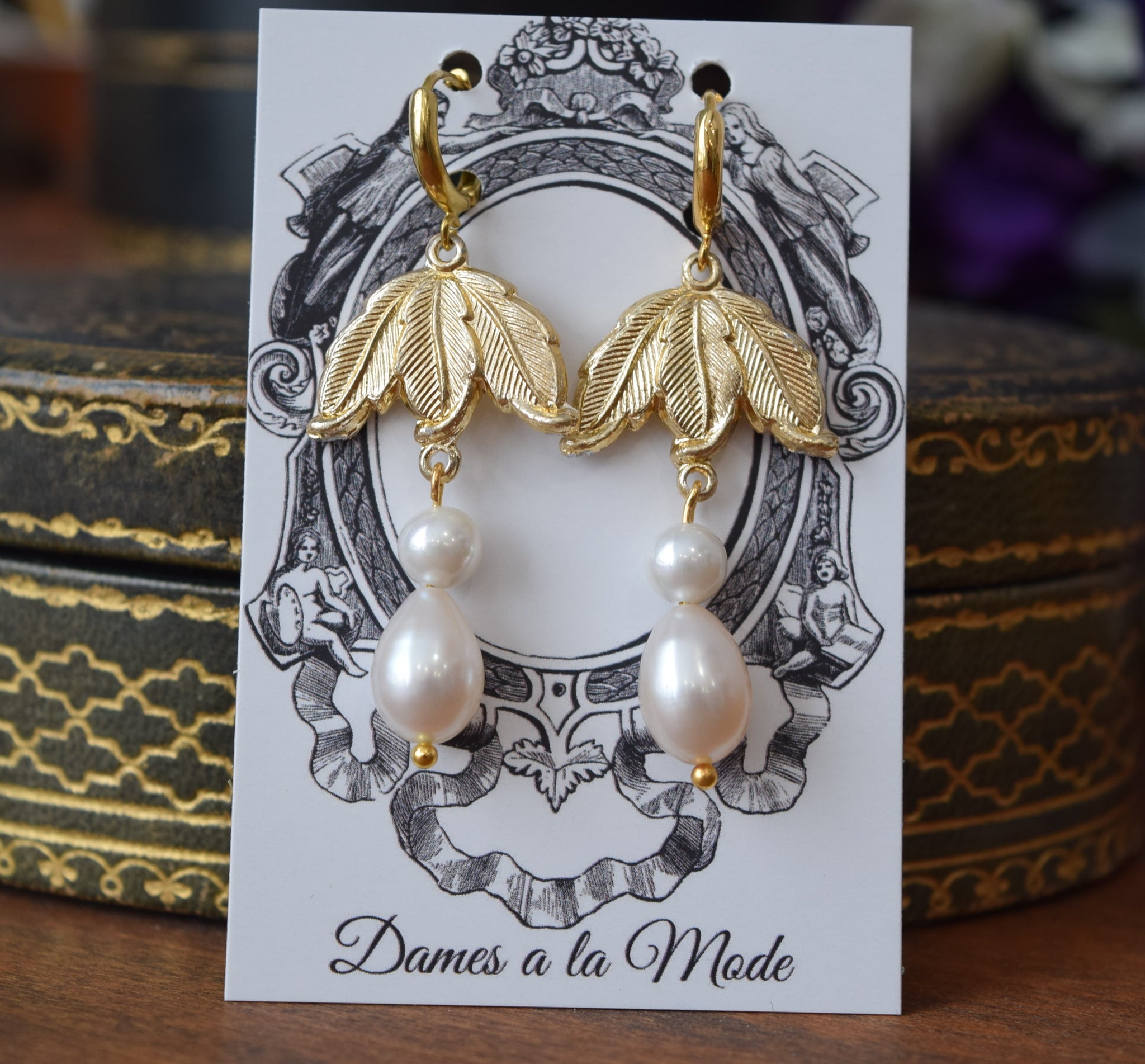 Material - Vintage leaf elements with Freshwater Pearl beads