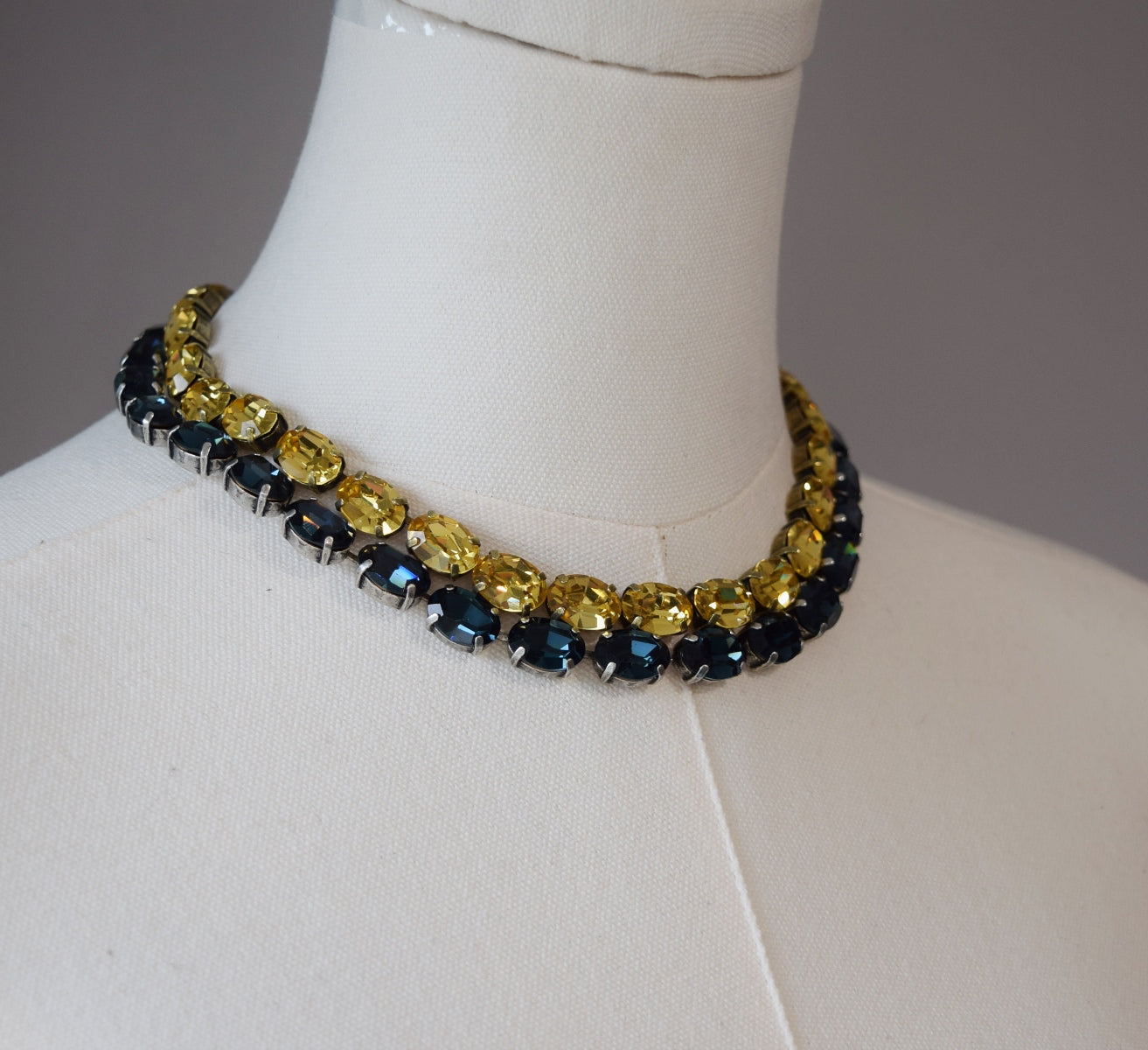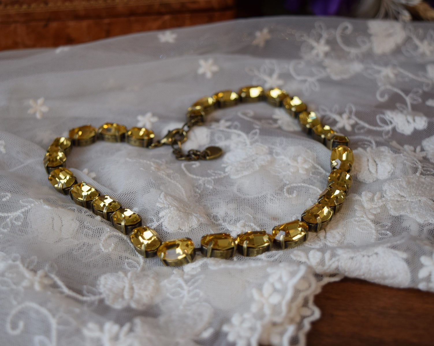 Golden Yellow Swarovski Crystal Necklace - Medium Oval