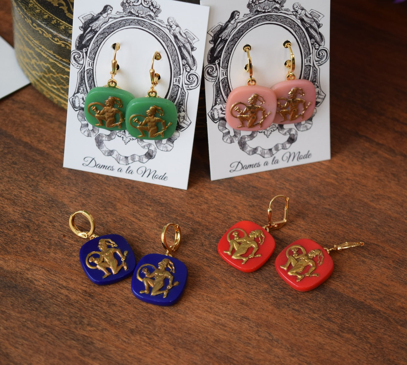 These completely unique and unusual vintage cameo stones feature a greek warrior relief in a gold/bronze tone. In your choice of color.