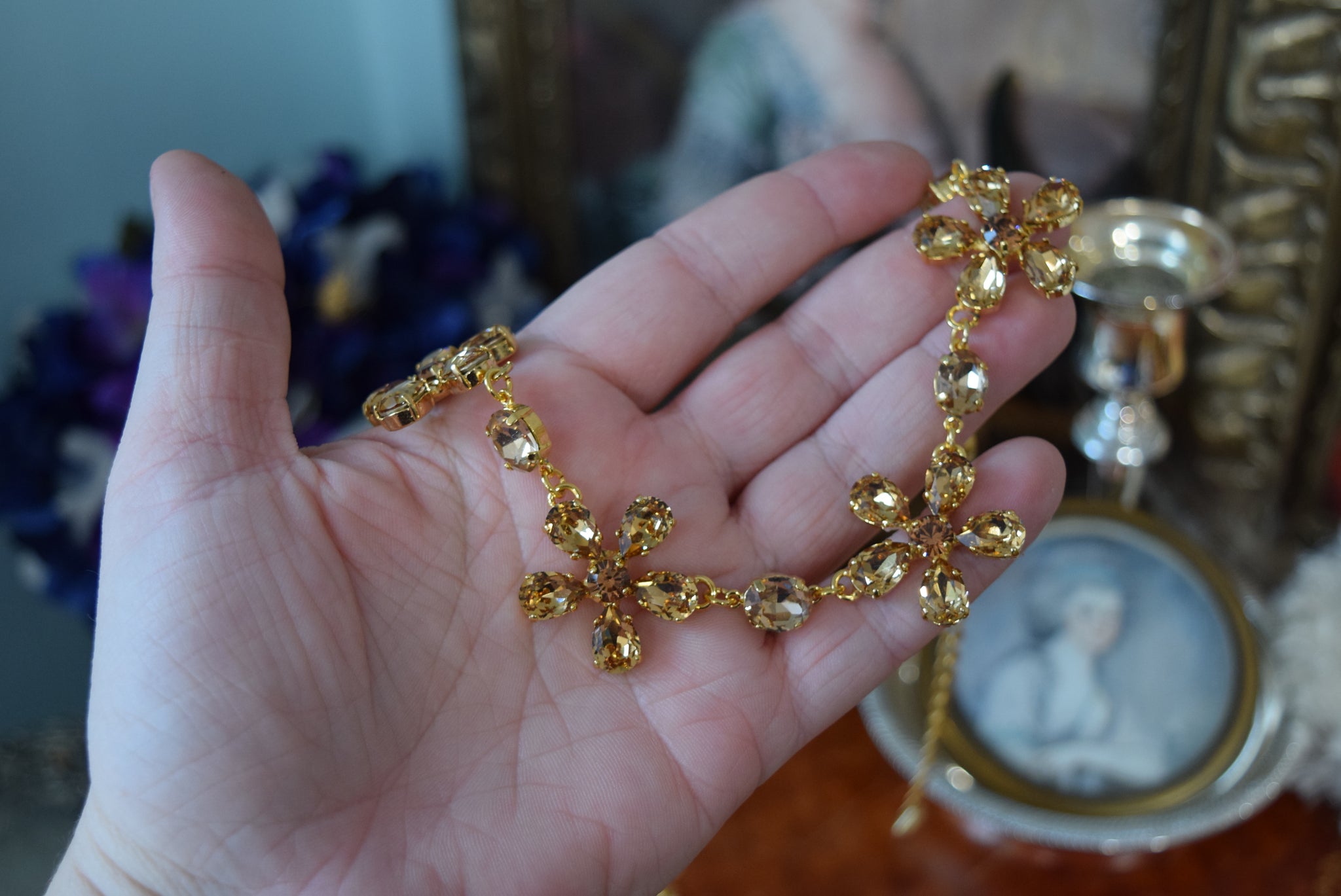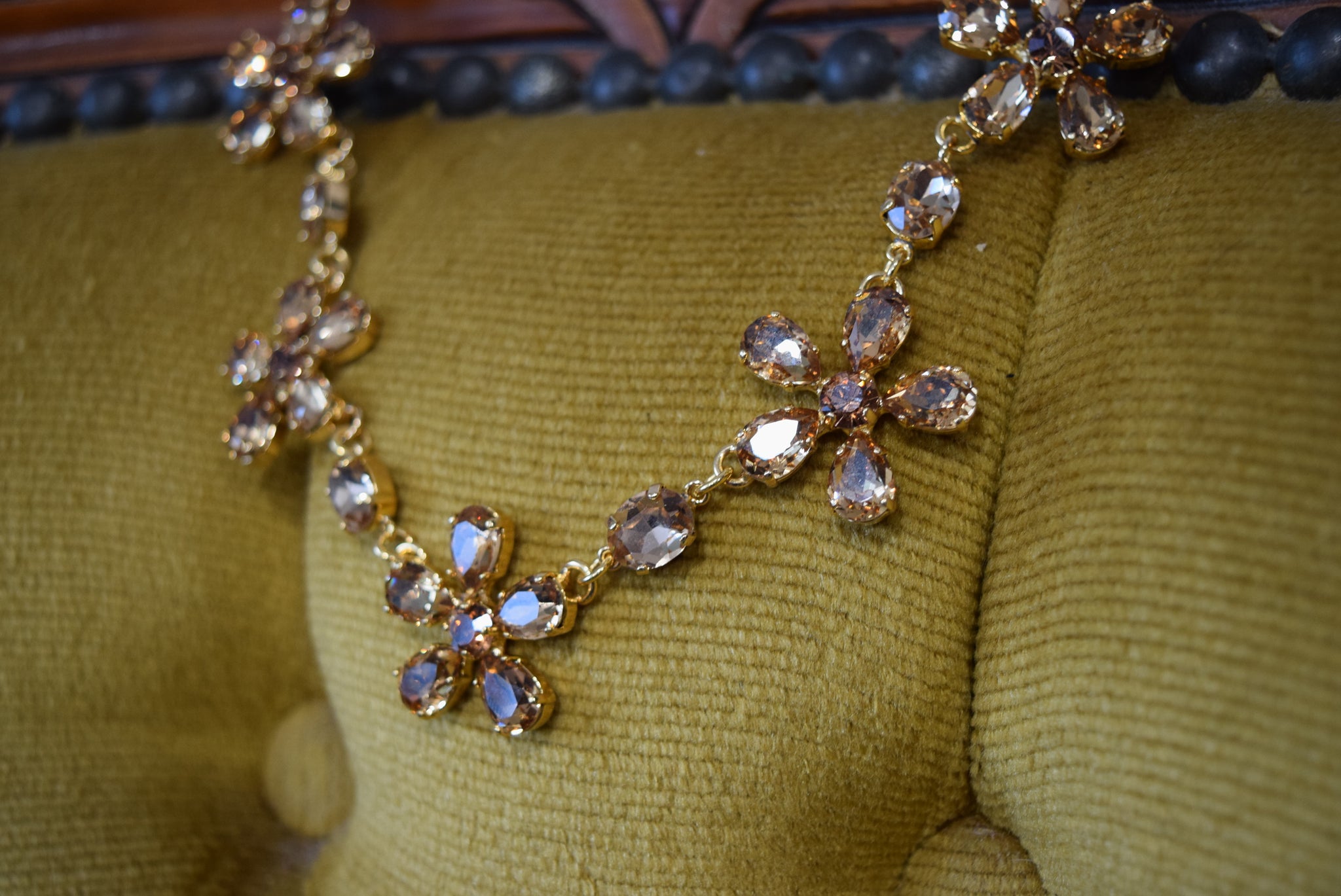 This stunning necklace in my signature floral cluster style is made with eye-catching Aurora crystals in Light Colorado Topaz. This warm, golden tone is an incredible neutral that matches so many things and is super sparkly!