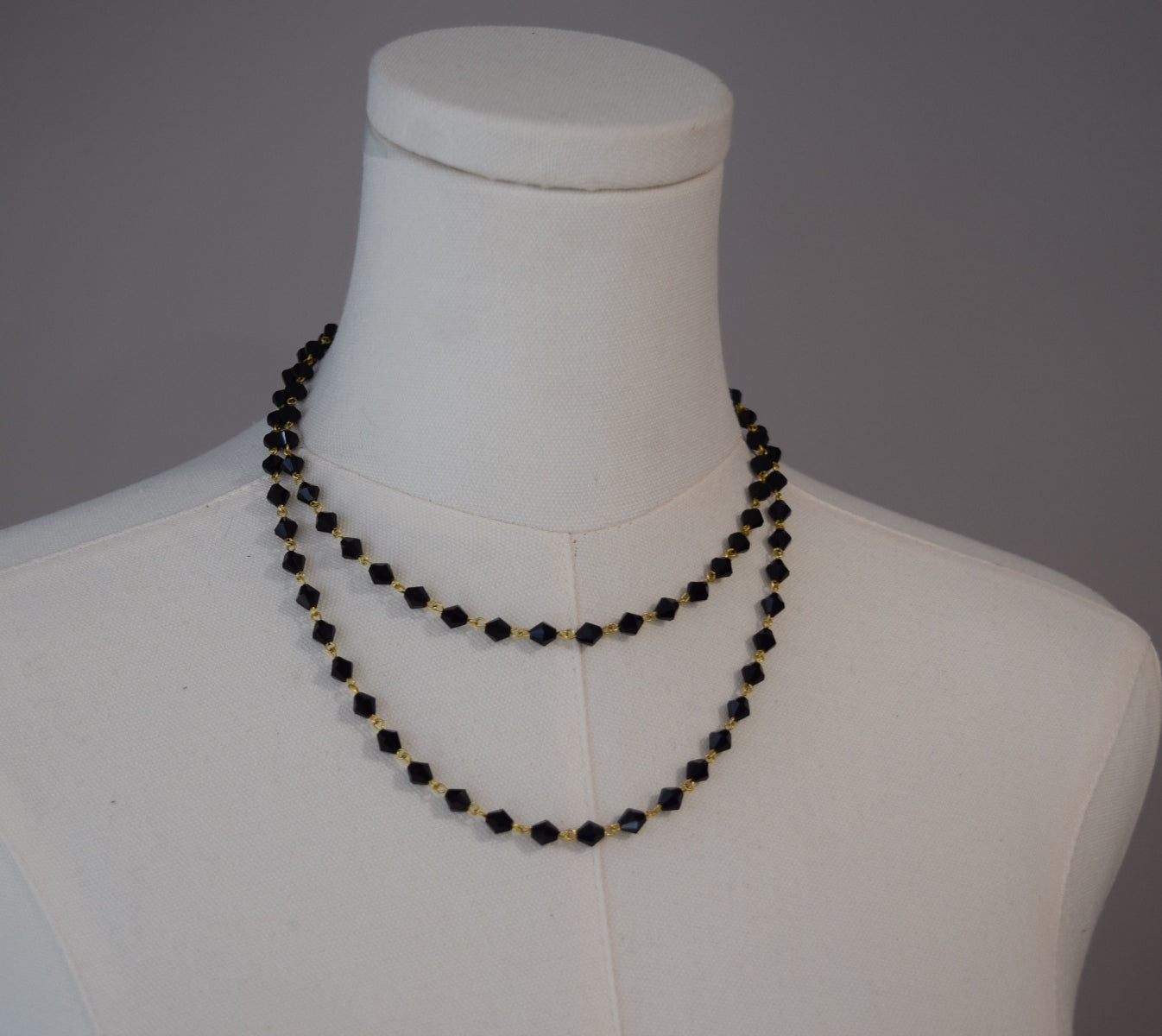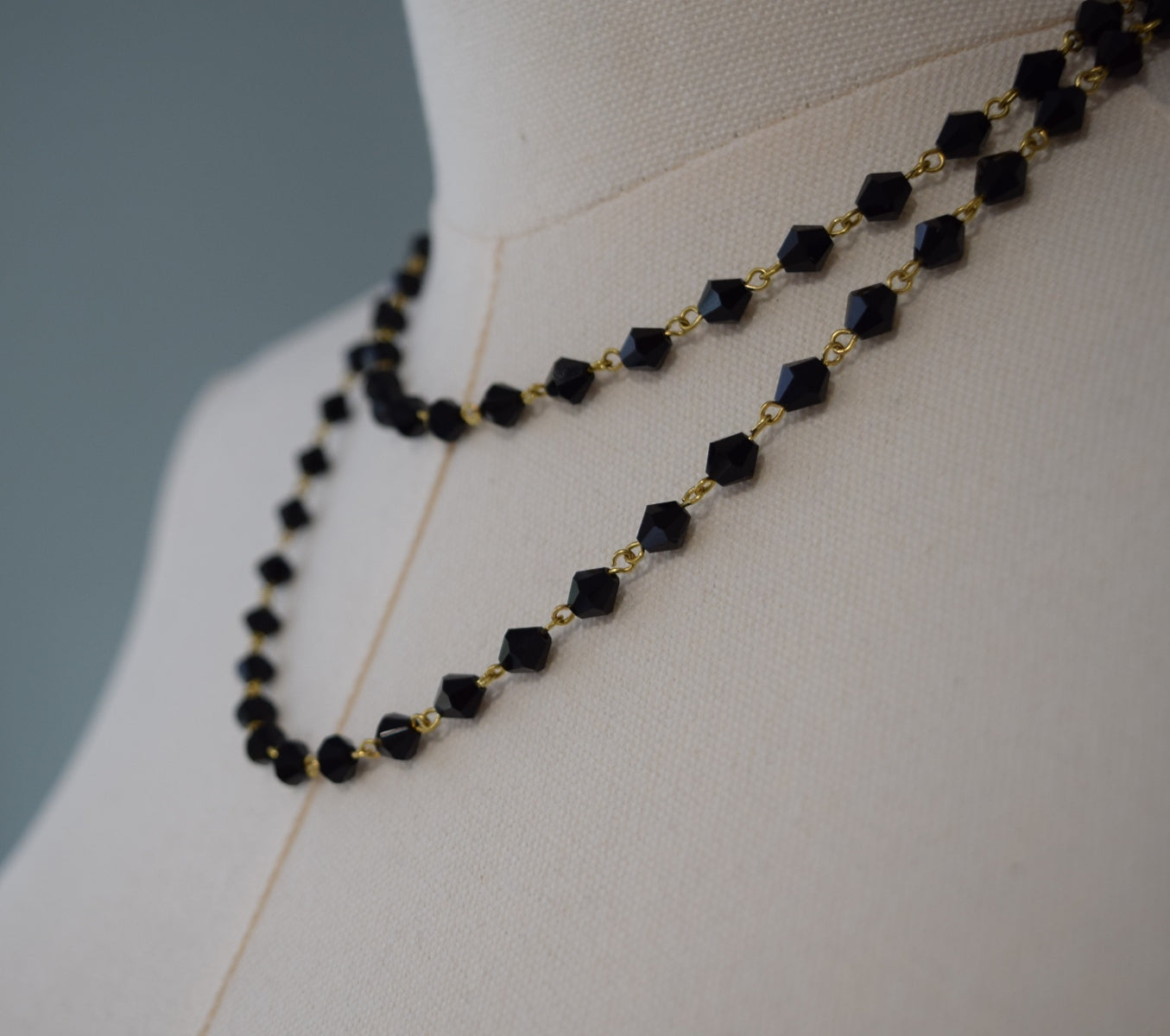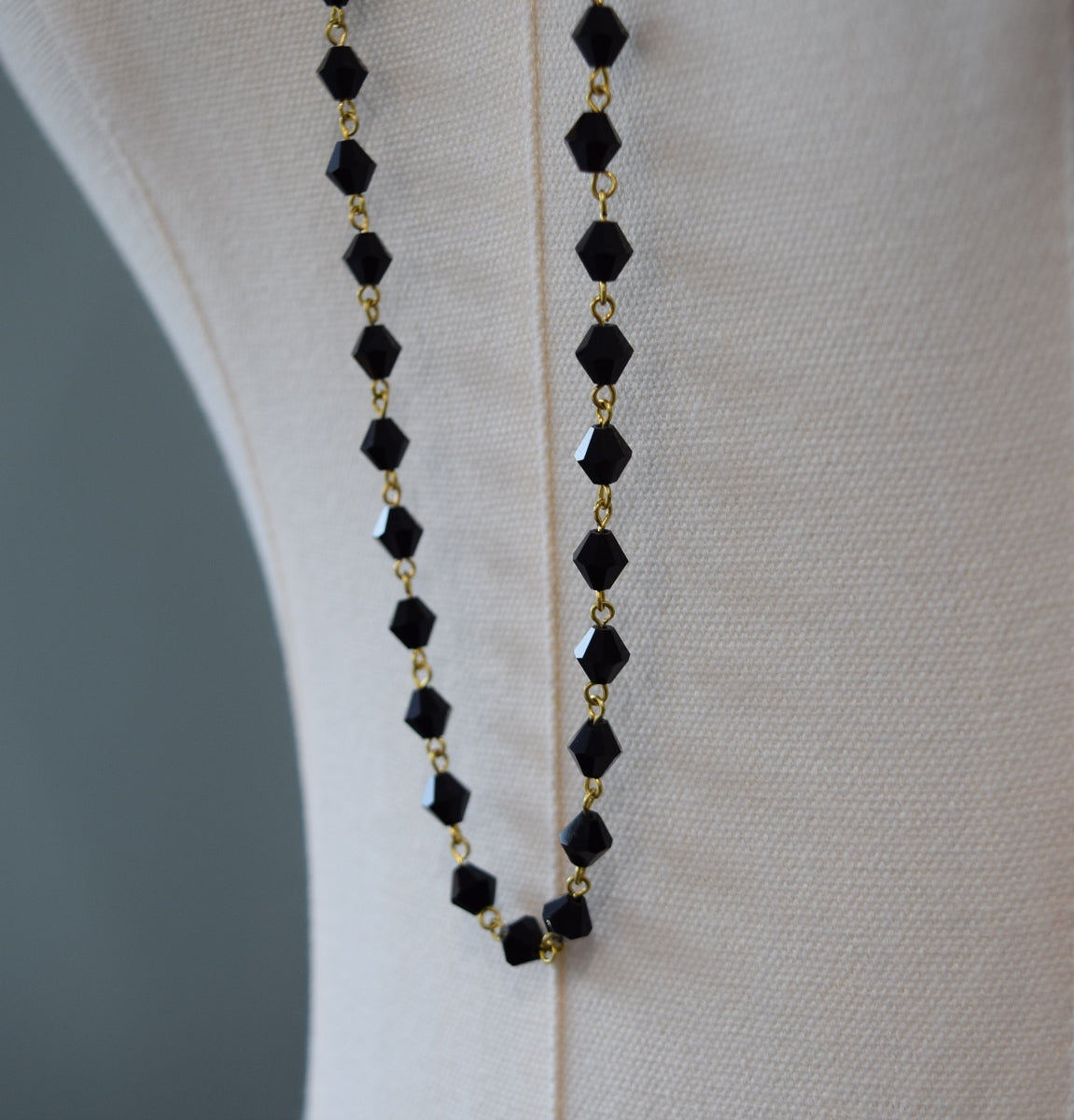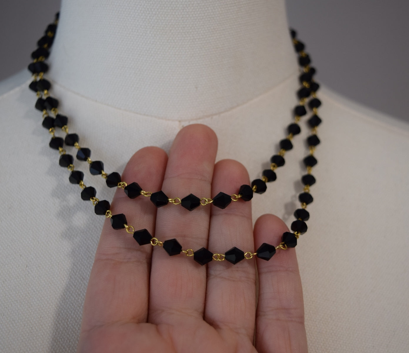Material -6mm Faceted glass jet stones on Gold plated chain
