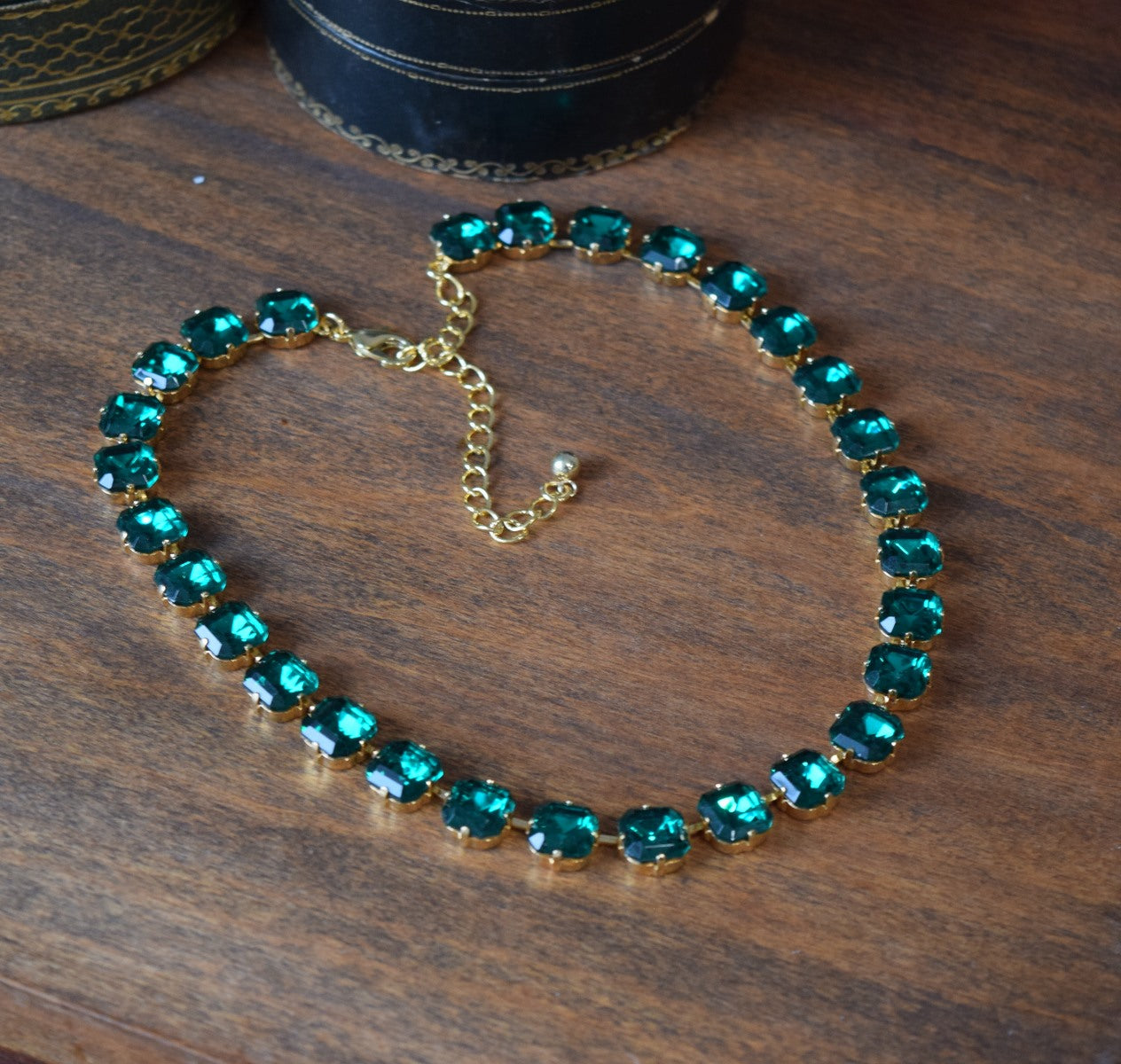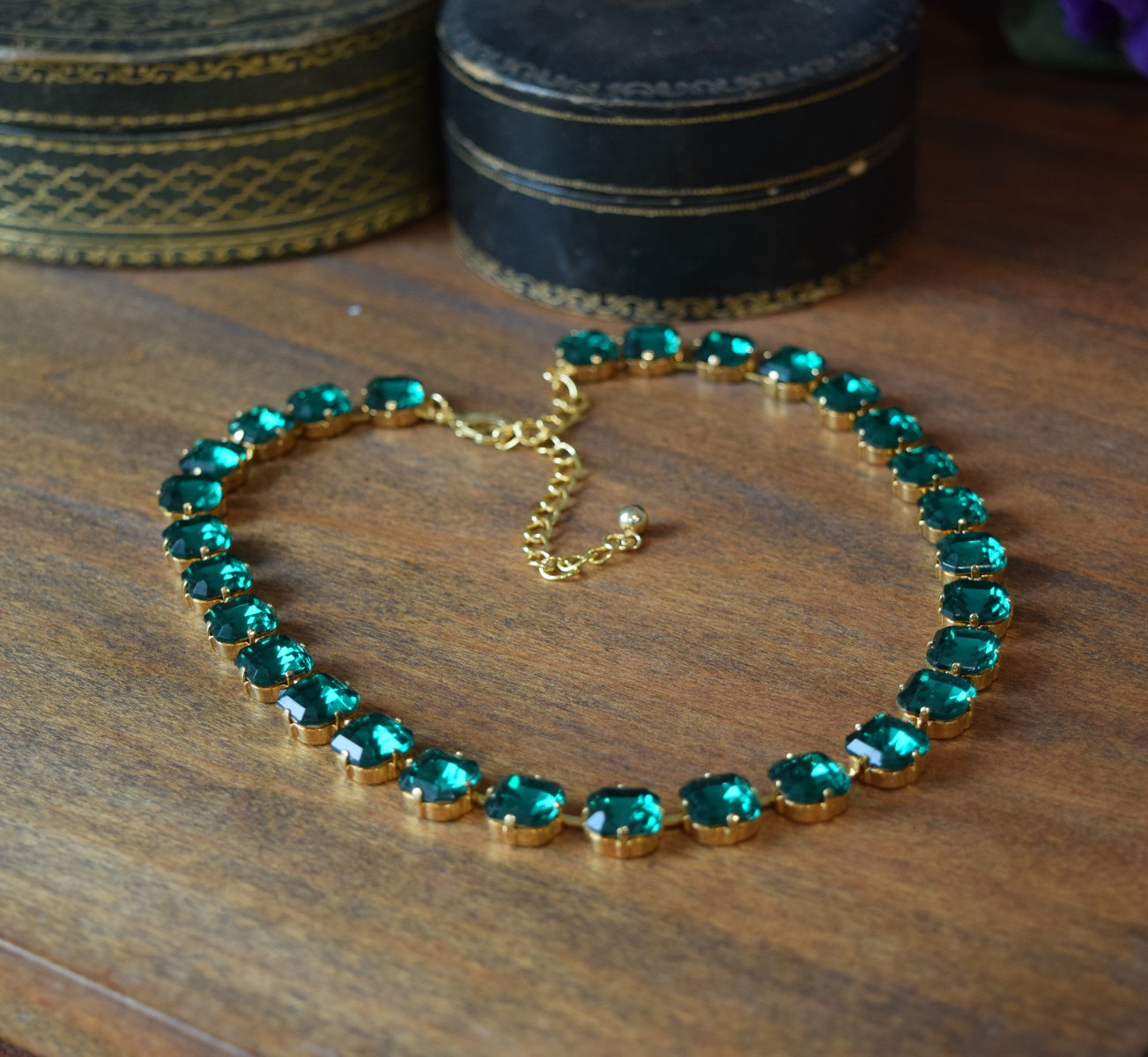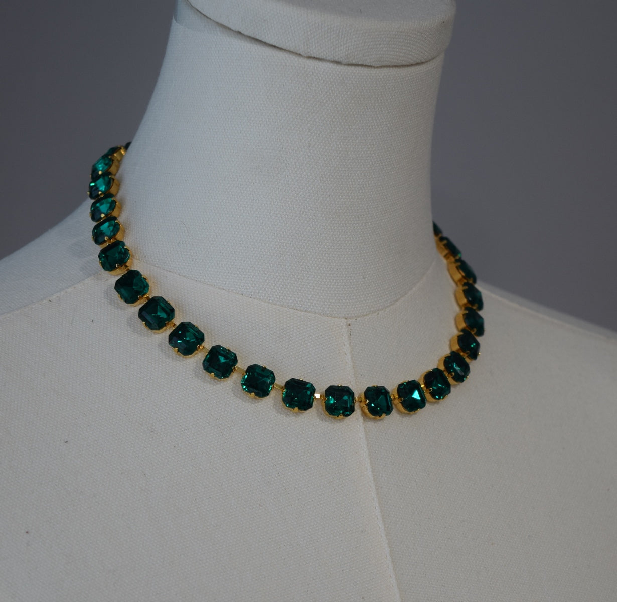 Material - Czech crystals in Emerald.  Gold plated settings.